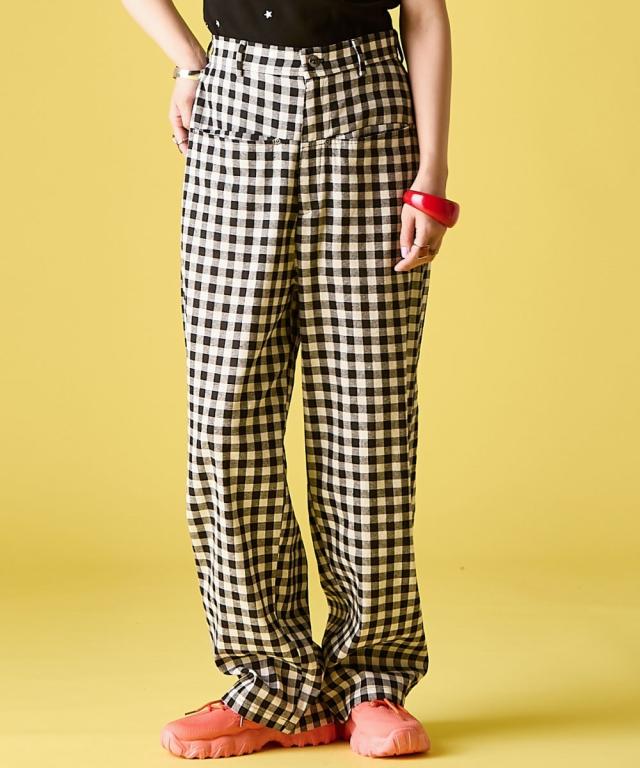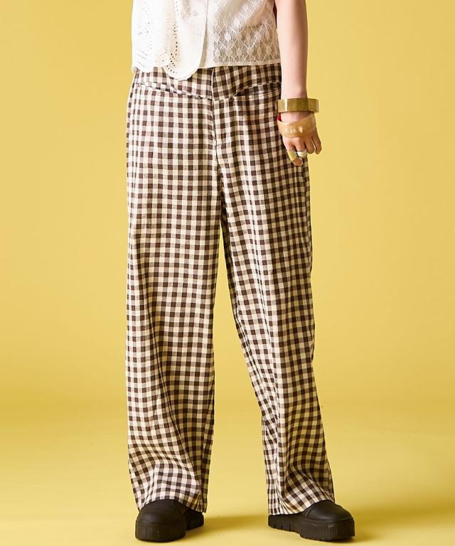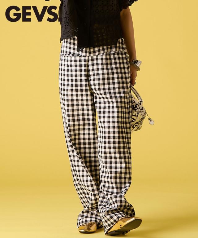 ワイドパンツ レディース ギンガムチェックルーズ パンツ GEVS. 春 夏 ゆったり 体型カバー 美脚 ボトムス ズボン | 6L/8L/10L | ニッセン nissen