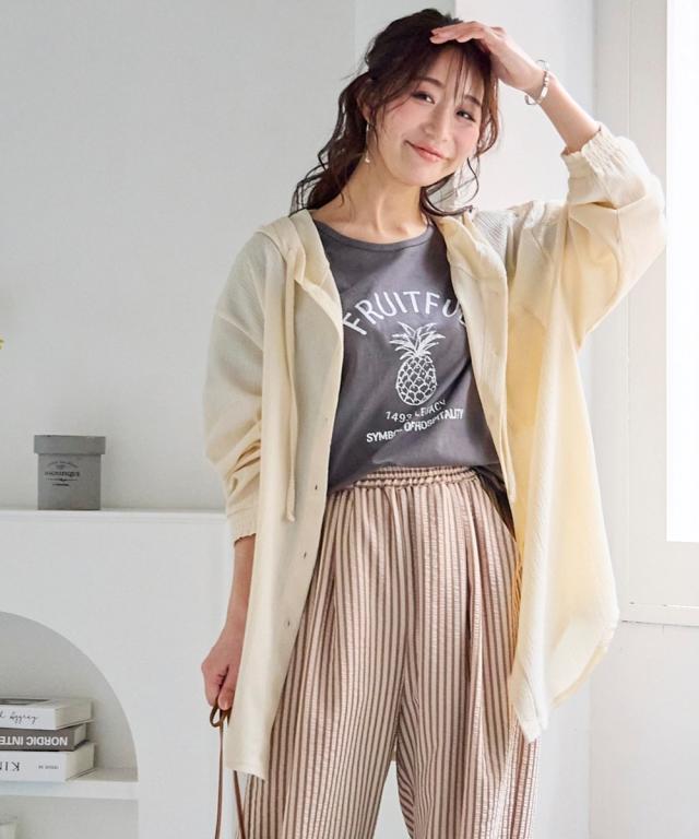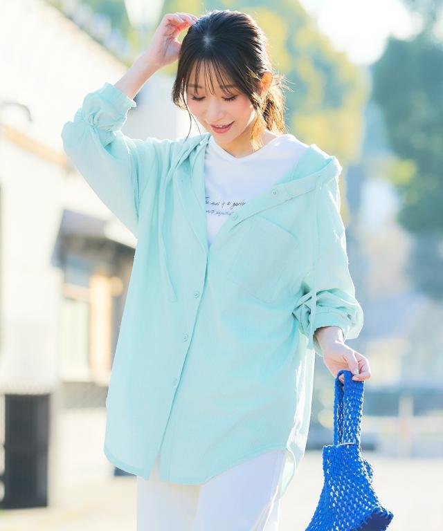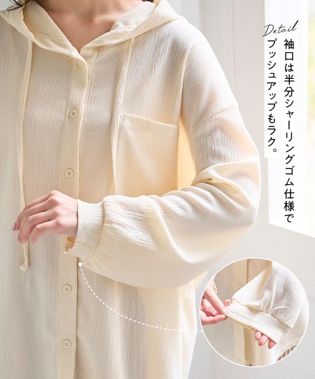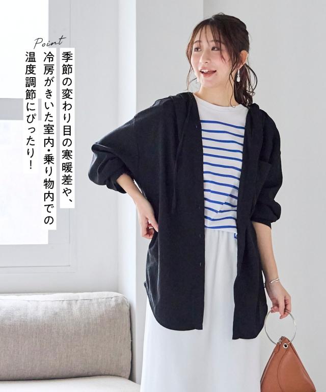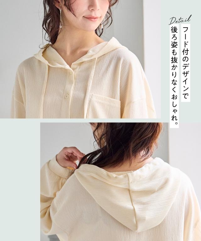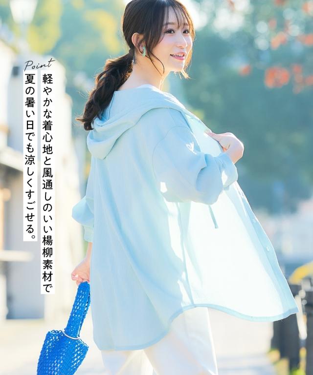 パーカー レディース 楊柳ビッグフード シャツ UVカット 夏 フーディ | S/M | ニッセン nissen