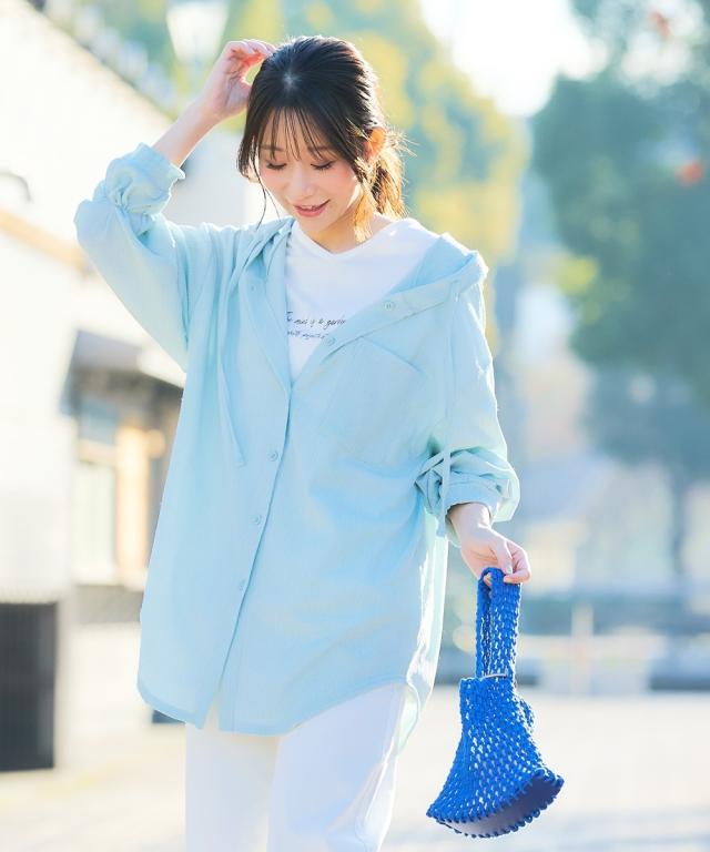 羽織るだけで、心まで軽やか。 「私の味方服」がいちばん大切な普段の日を、もっと心地よく、もっと幸せに。 今どきの抜け感とこなれスタイルがこれ一枚で完成します。 毎日の着やすさをトコトン追求し、動きやすさと「楽ちん」を両立。 日差しから肌を守るUVカット機能を備え、季節の変わり目から冷房対策まで、忙しいあなたの毎日を優しく支える、まさに「味方」になってくれるビッグフードシャツパーカーです。 ■デザイン ゆったりとしたオーバーサイズ設計が、今の気分にぴったりのビッグシルエット。 大きめのフードは顔周りをふんわりと包み込み、小顔効果を演出するとともに、バックスタイルにも可愛らしいアクセントを添えてくれます。 気になる二の腕を自然に隠してくれるボリュームスリーブは、手首を見せることで抜け感も自由自在。 裾のラウンドカット仕様がヒップ周りをさりげなくカバーしつつ、横から見たシルエットも「こなれた大人」の雰囲気を醸し出します。 体型カバーを叶えながら、どこから見てもおしゃれに決まる、計算されたデザインが自慢の一着です。 ■素材 ポリエステルを主軸とした楊柳(ようりゅう)素材を使用しています。 表面に細かい縦シワ(シボ)があることで肌