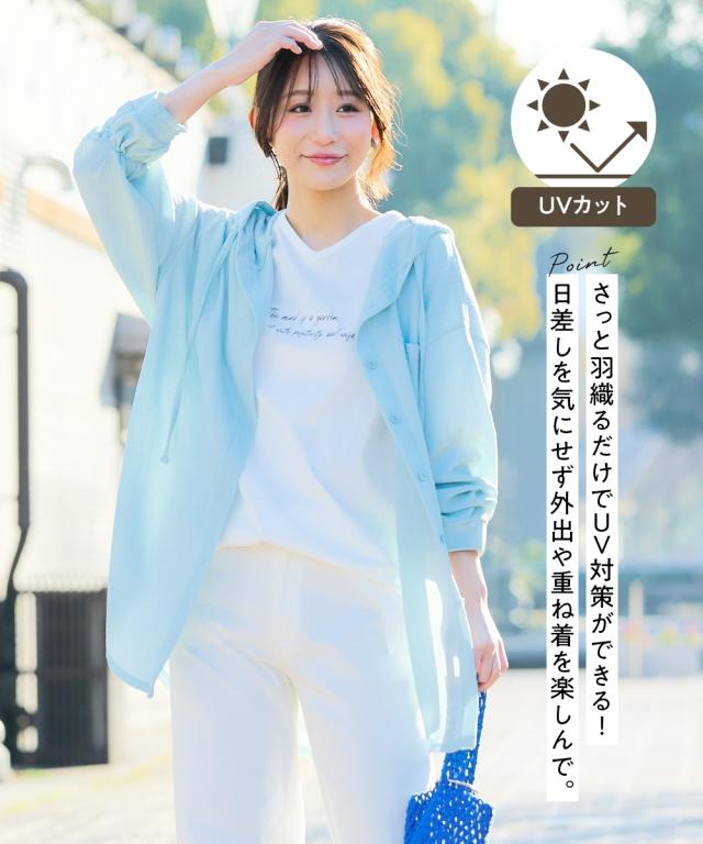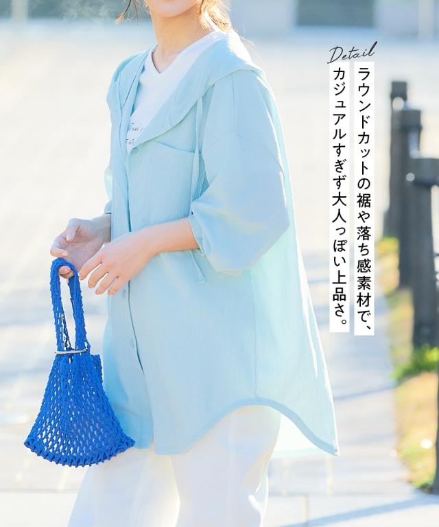 パーカー レディース 楊柳ビッグフード シャツ UVカット 夏 フーディ | L/LL/3L | ニッセン nissen