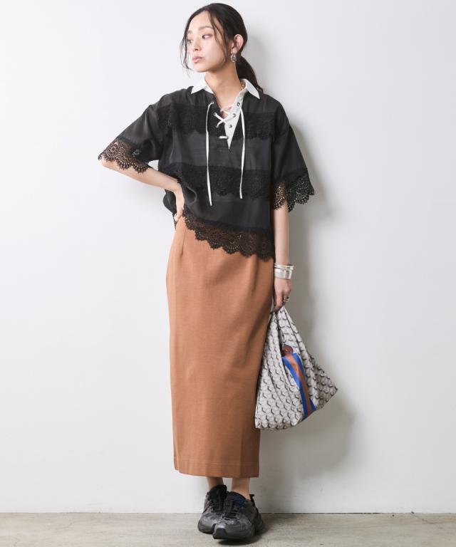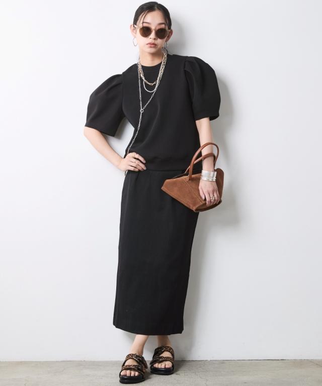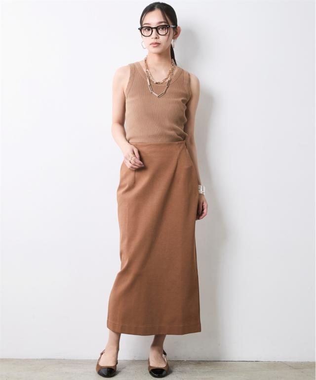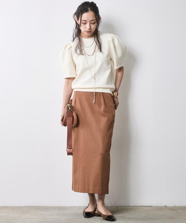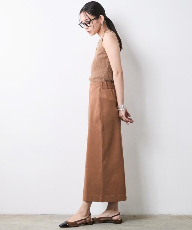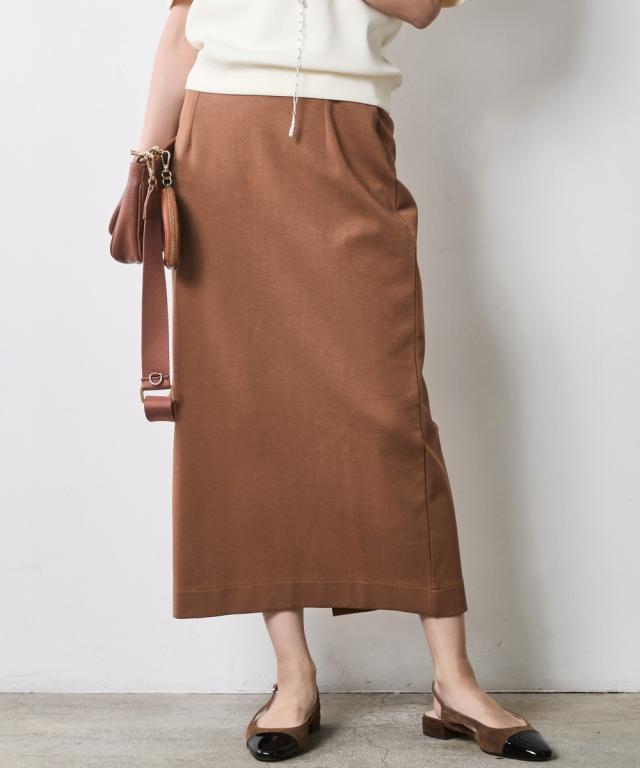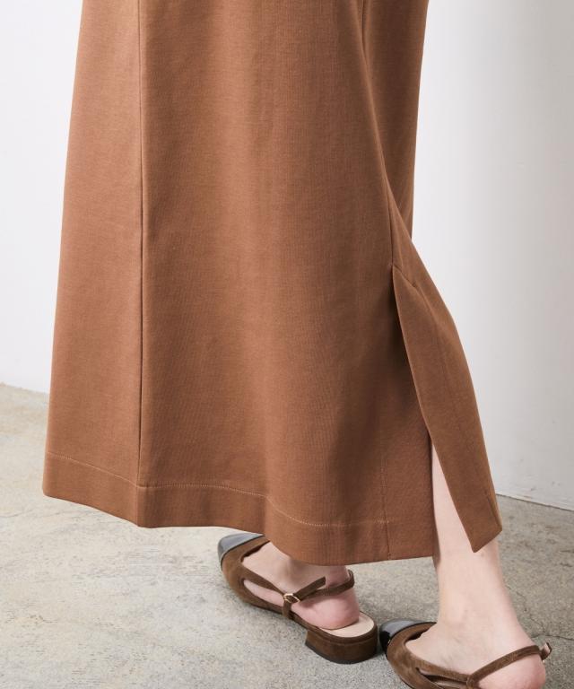 身体のラインを拾わず、真っ直ぐな美しさを引き出す大人のためのタイトスカート。 ■デザイン スタイルアップを叶えるIライン、腰周りはすっきりと、裾に向かってすとんと落ちるストレートシルエット。 肉感を拾いにくい絶妙な厚みの生地が、気になる下半身をスマートに補正します。 足捌きを妨げない 深めのバックスリットを施すことで、タイトなルックスながら足捌きは軽やか。 階段の上り下りや歩行時もストレスを感じさせません。 インでもアウトでも美しいお腹周りをフラットに見せるハイウエストのデザイン。 トップスをインして綺麗めに、チュニックを重ねてレイヤードのベースにと、幅広い着こなしに対応します。 ■素材 さらりとしたドライタッチ、きめ細やかで上品な表面感のカットソー素材を採用。 肌離れが良くストレスフリーな着心地をキープ。 適度なハリ感があるため、きれいなシルエットキープします。 ■おすすめのスタイリング Sophisticated Set-up:別売り同素材の「ボートネックプルオーバー」を合わせた、洗練のセットアップスタイル。テラコッタやブラックのワントーンでまとめ、パールの多連ネックレスを添えれば、都会的なドレスアップが完成します。 Military Mix Mode: