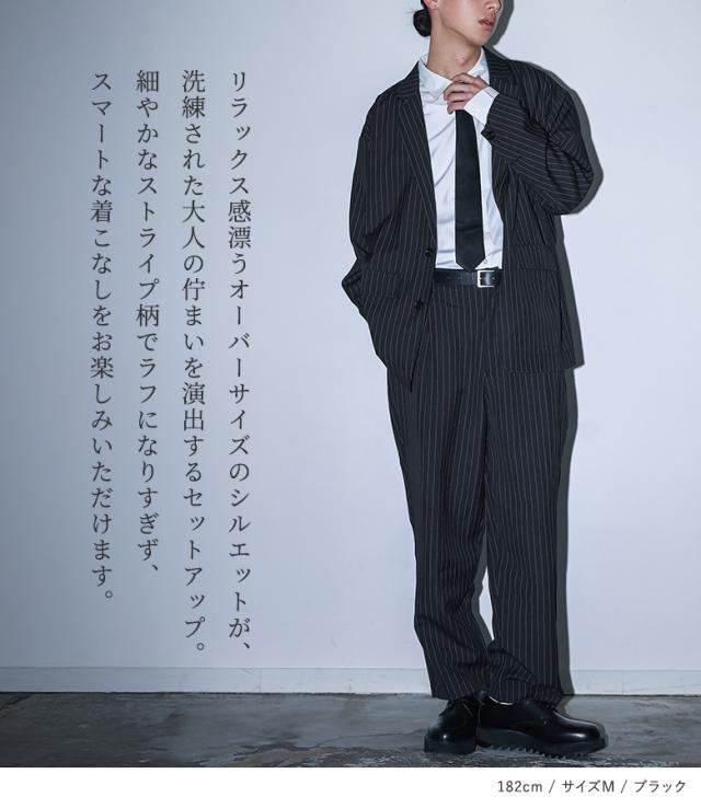 スーツ セットアップ メンズ アウター ボトムズ ジャケット パンツ 長袖 ロング丈 オーバーサイズ ピンストライプ柄 上下セット 春 夏 秋 冬 【MEN】 【TP】 ライトアウター 羽織り ボトムス ロングパンツ ワイドパンツ スラックス フルレングス 10分丈 ルーズフィット ストライプ柄 ポケット おうちで洗える オールシーズン フォーマル カジュアル シンプル モード オフィス ビジネス ストリート ゆったり ゆる 楽ちん S M L LL XL 10代 20代 30代 40代 50代 60代 低身長 高身長 オフィス 通勤 通学 お買い物 お出掛け おしゃれ お洒落 トレンド 流行 パーティー 二次会 結婚式 入学式 卒業式 オケージョン セレモニー 謝恩会 学校行事 お宮参り 七五三 入園式 卒園式 大人男子 大人かっこいい お洒落かっこいい お洒落男子 パパ 父 父親 かっこいい osharewalker オシャレウォーカー おしゃれうぉーかー MDR エムディアール 大人カジュアル ベーシック ラフ オフィスカジュアル スタイリッシュ 上品 きれいめ ブラック 黒[ID]45op001[MDRストライプルーズフィットセットアップ]