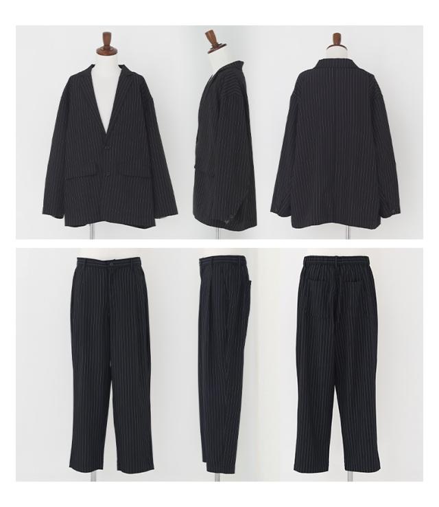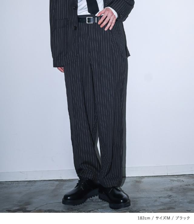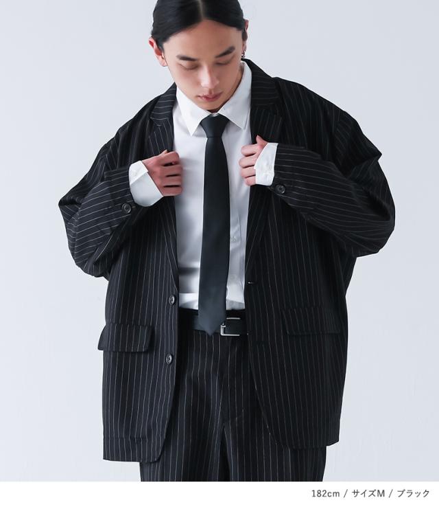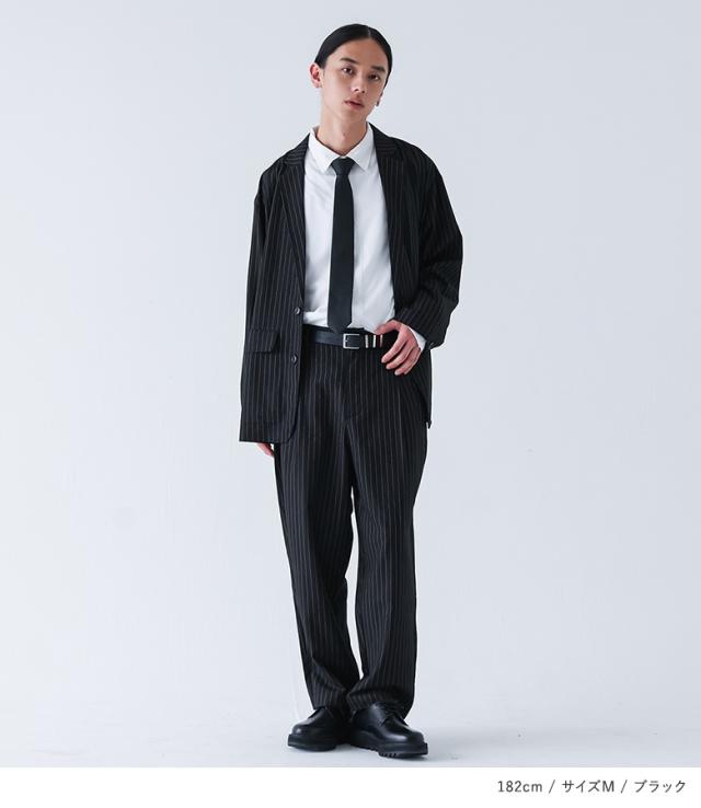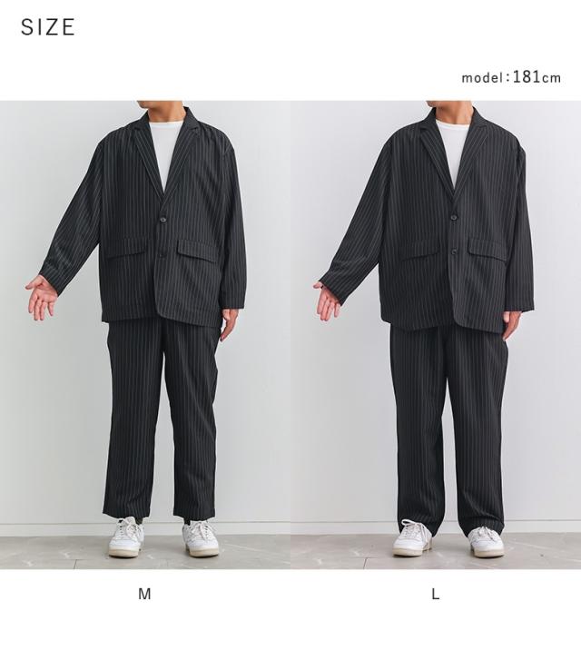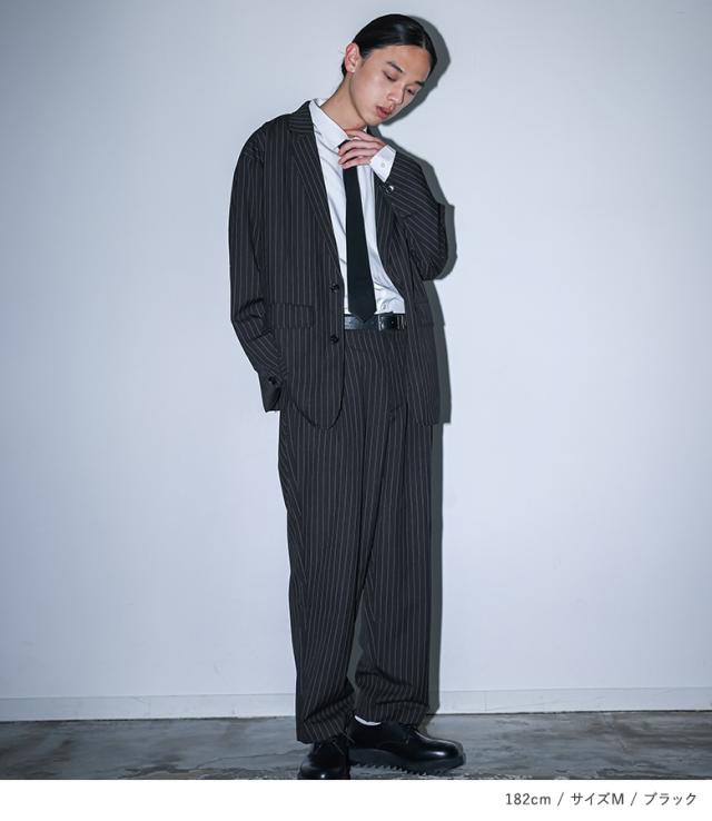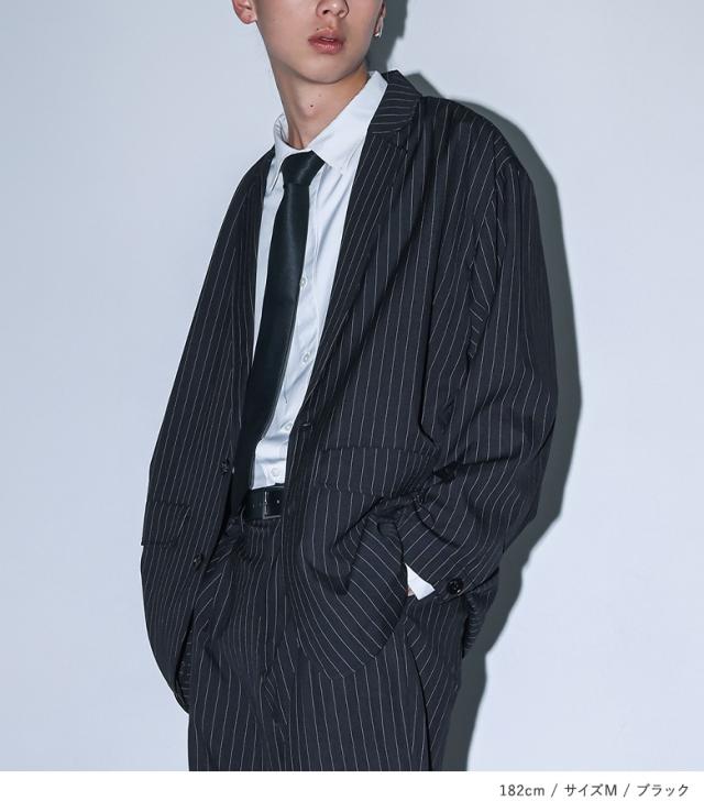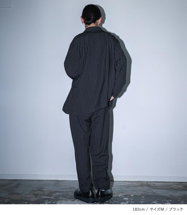 <春新作>『MDRストライプルーズフィットセットアップ』【メール便不可】【30】[スーツ セットアップ メンズ アウター ボトムズ ジャケット パンツ 長袖 ロング丈 オーバーサイズ ピンストライプ柄 上下セット 春 夏 秋 冬]