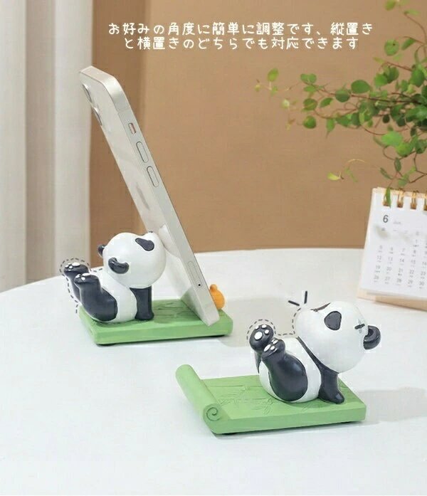 スマホスタンド パンダ 卓上 置物 ホルダー 携帯電話用ドック 滑り止め 縦置き 横置き パンダグッズ 雑貨 可愛い ケータイ タブレット 置台 飾り物