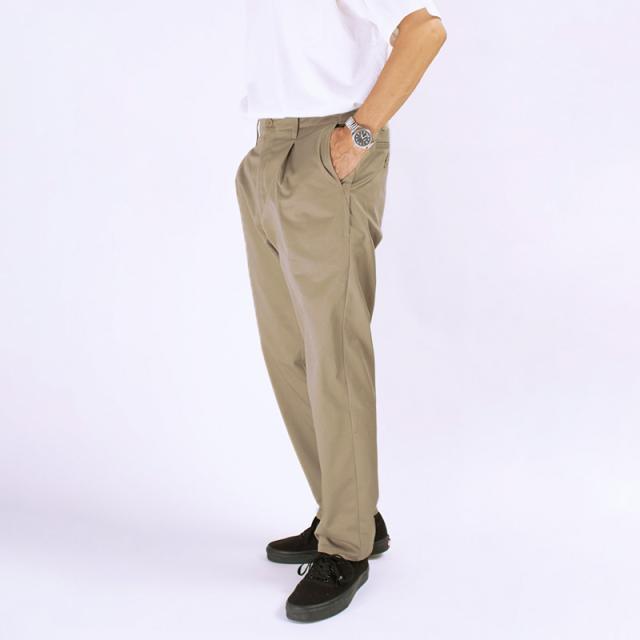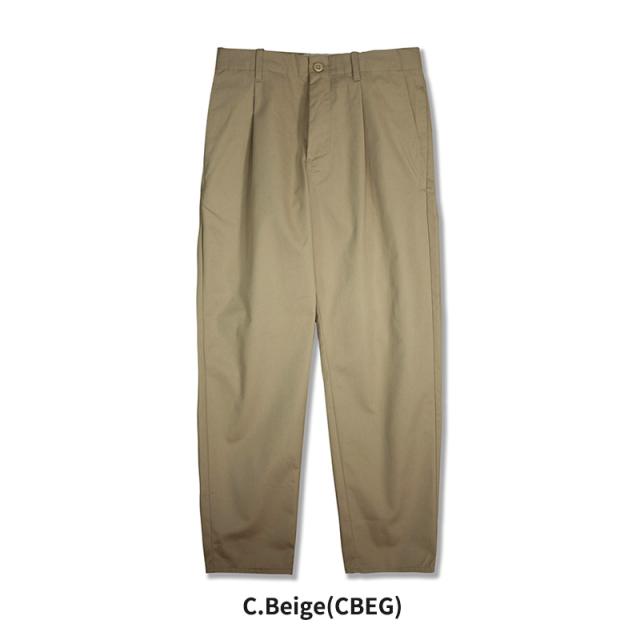 ADDICTIVE TUCK TAPERD PANTS ユニバーサルオーバーオールのアディクティブタックテーパードパンツは、立体感のあるタックデザインと美しいテーパードラインが特徴の一本。都会的でクリーンな印象とリラックス感を併せ持つボトムスです。