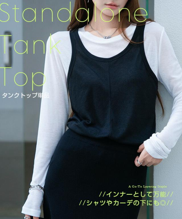 同色タンクトップの計算されたレイヤード設計。