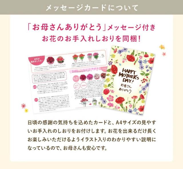 母の日メッセージ入りお手入れガイドをお付けいたします。(見やすい見開きA4サイズ)