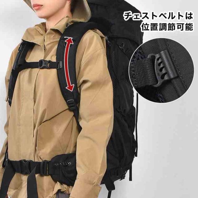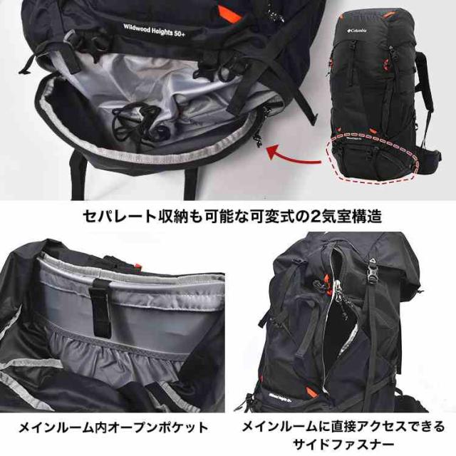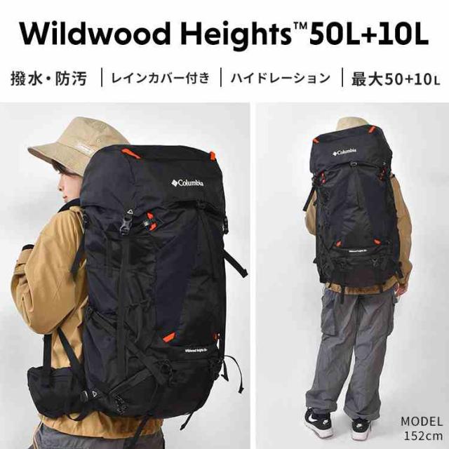 リュック 登山 columbia コロンビア ワイルドウッドハイツ 50L 60L メンズ レディース 大容量 背中メッシュ 撥水 防汚 レインカバー付き 拡張 アウトドア ブランド PU7250 ザック 登山バッグ リュックサック バックパック 山登り レジャー キャンプ トレッキング 黒 ブラック