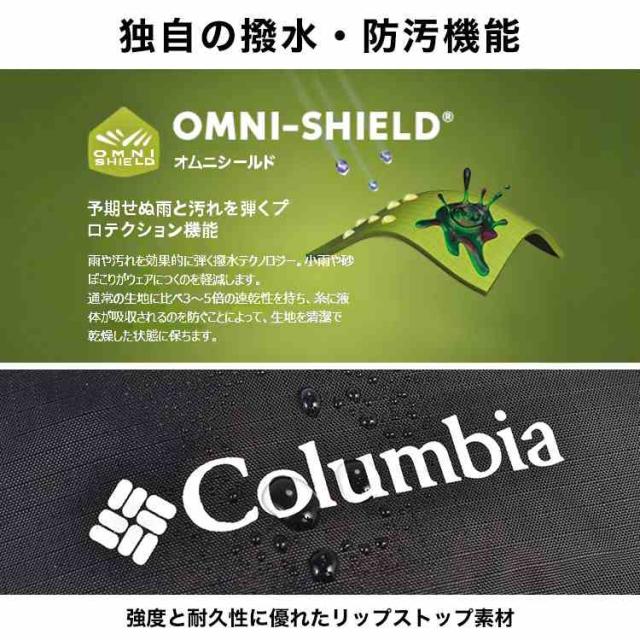 コロンビア独自の撥水機能『OMNI-SHIELD(オムニシールド)』により、突然の雨や汚れにも対応。耐久性の高いナイロン素材で、ハードな環境でも頼れる仕様です。