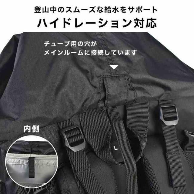 各種収納ポケットも充実。雨蓋はセキュリティポケットを兼ねており、リュックから取り外してショルダーバッグとしても使えます。![]() ![]() ハイドレーション対応で登山中のスムーズな給水をサポート。