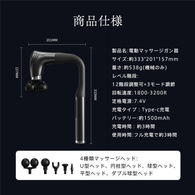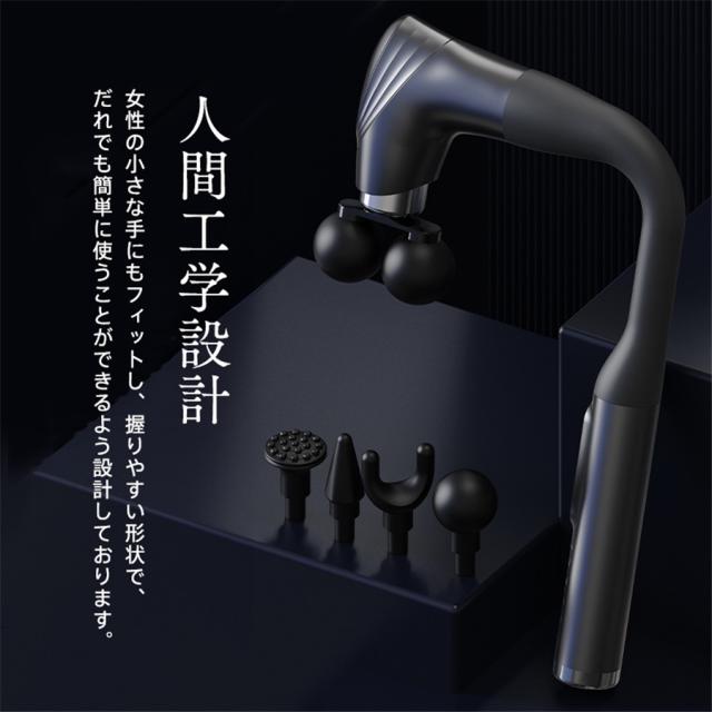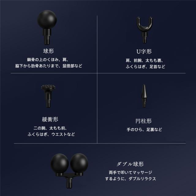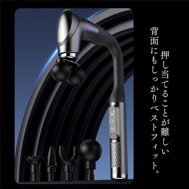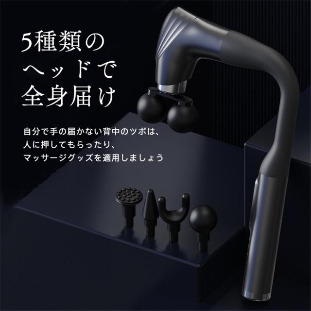 電動マッサージガン 筋膜リリースガン マッサージガン 12段階強度 5種類ヘッド ハンディガン マッサージ器 充電式 全身 静音 背中 腰 肩 首 爆買