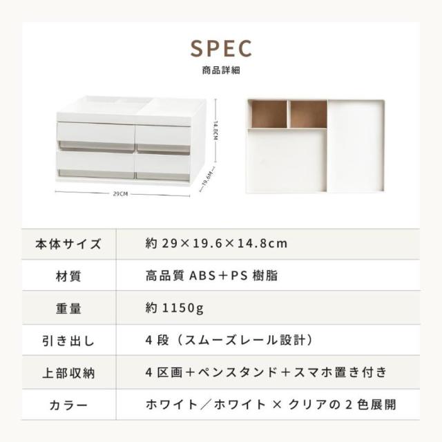 卓上収納ボックス(ホワイト/ホワイト×クリア)