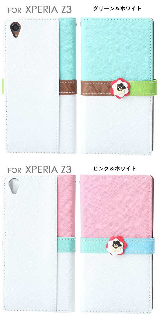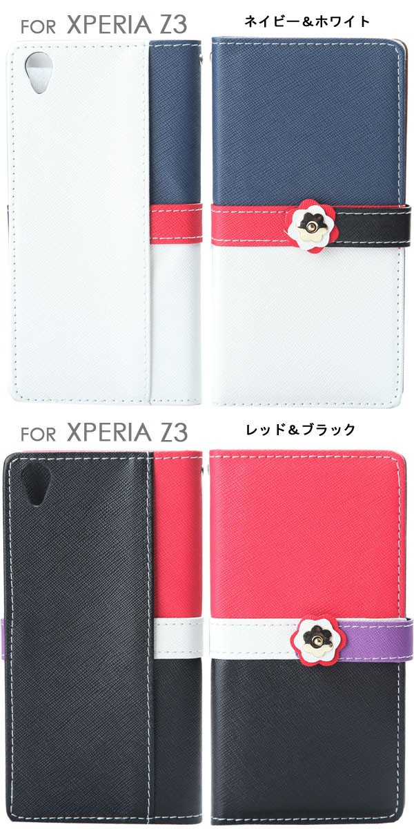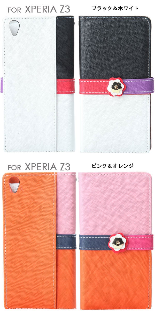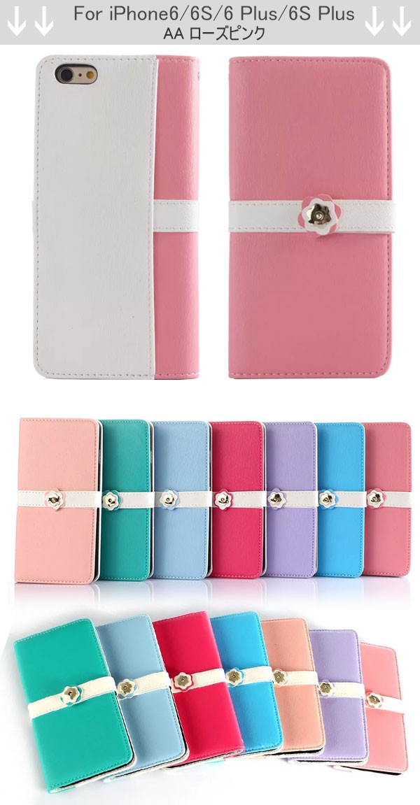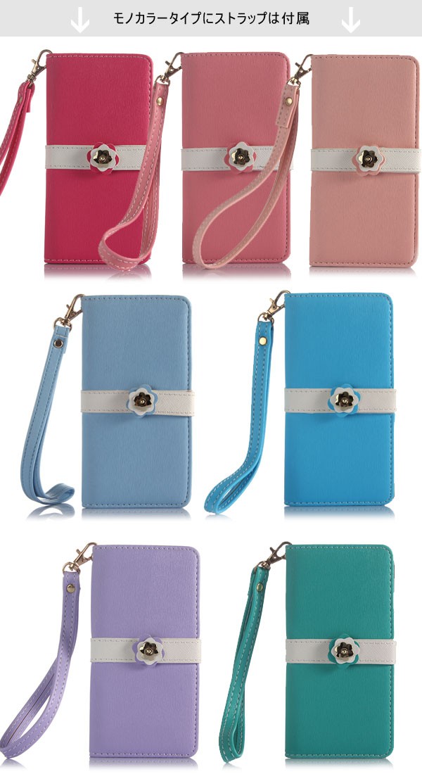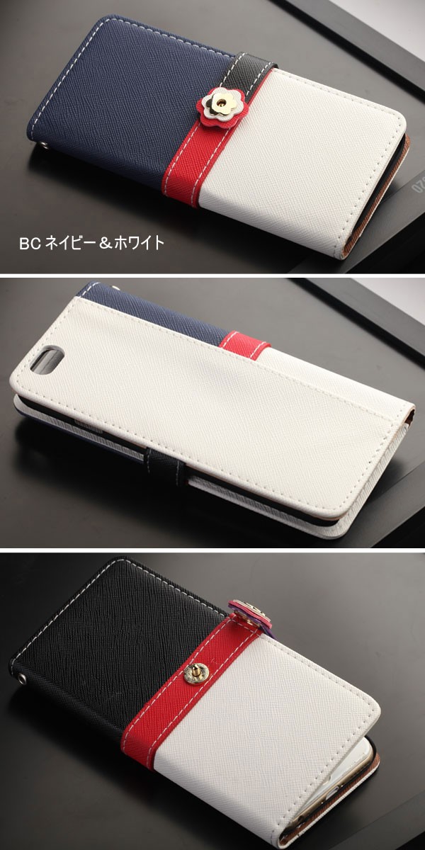 iPhone X iPhone8/8Plus/7/7Plus iPhone6S iPhone6S PLUS iPhone6 iPhone6 PLUS iphone5 iphone5s iphone5c iPhone SE Xperia Z3 SO-01G/SOL26用のバイカラー手帳タイプのレザーケース!留め具にはフラワーモチーフ、ベルト部分もお色違いで可愛さ満点!二つのカードが入る収納力を持ち、スマホ1つでお出かけすることは可能♪手帳タイプで液晶画面までしっかり保護でき、本体全体を傷から守る!便利なストラップホール付きでお手持ちのストラップを付けてカスタマイズもOK!デザイン性と機能性を兼ね備えたケースはご自身用としてはもちろん、プレゼントにもオススメのプレミアムなケース!