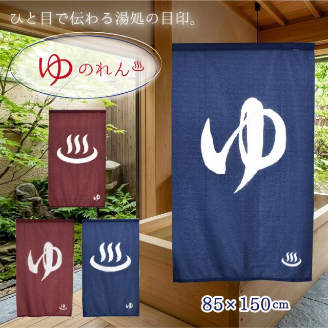 のれん ゆ 暖簾 温泉 150cm丈 洗える 約85×150cm 間仕切りのれん 和風 風呂場 湯 男湯 女湯 ゆのれん 目隠し 間仕切り