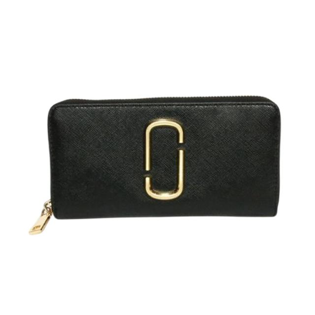 マーク・ジェイコブス スナップショット ラウンドファスナー財布 ブラック ゴールド金具 ▲レザー引き手無し 中古 Marc Jacobs