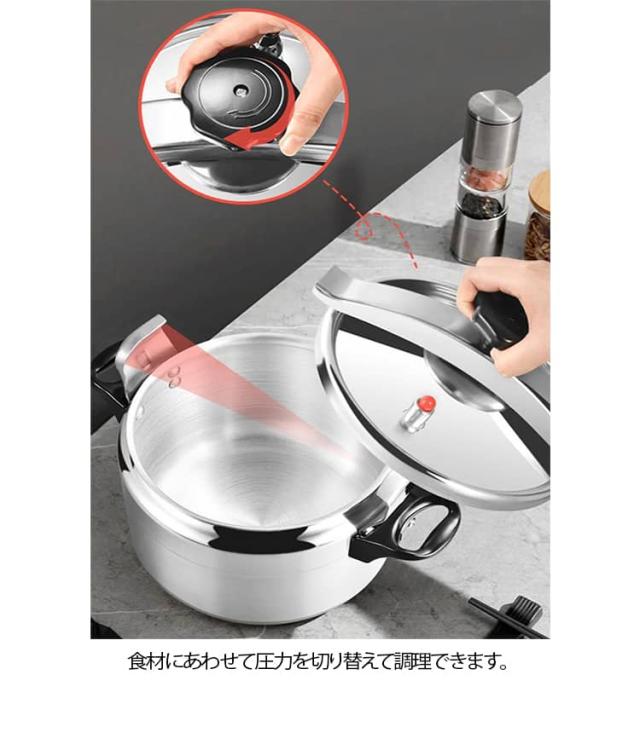 | 3L(2?3人用)圧力鍋 時短 オール熱源対応 ガス火 IH ハロゲンヒーター などすべての熱源に対応。 圧力をかけて調理をするので食材が短時間で調理できるエコで時短の圧力鍋です。 食材にあわせて圧力を切り替えて調理できます アルミ製なので軽い シンプルな操作で初めての圧力鍋にもおすすめ。 適用する場合:台所,家庭の自家用,移転、フェア、広告プロモーション、従業員福祉、記念日、ビジネス贈答、開業式、授賞記念 | |