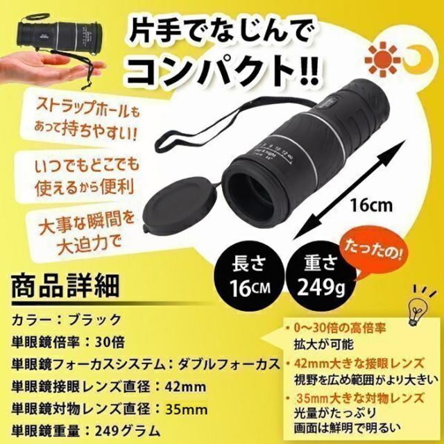 単眼鏡 30x52 高倍率 望遠鏡 昼夜兼用 美術館 観戦 観察 運動会 コンパクト 高倍率 コンサート 旅行 アウトドア スポーツ ライブ レジャー バードウォッチング《代引き不可》 ポイント消化