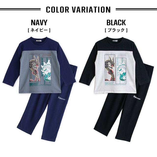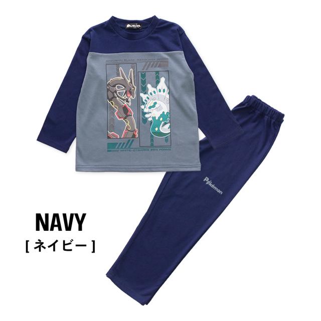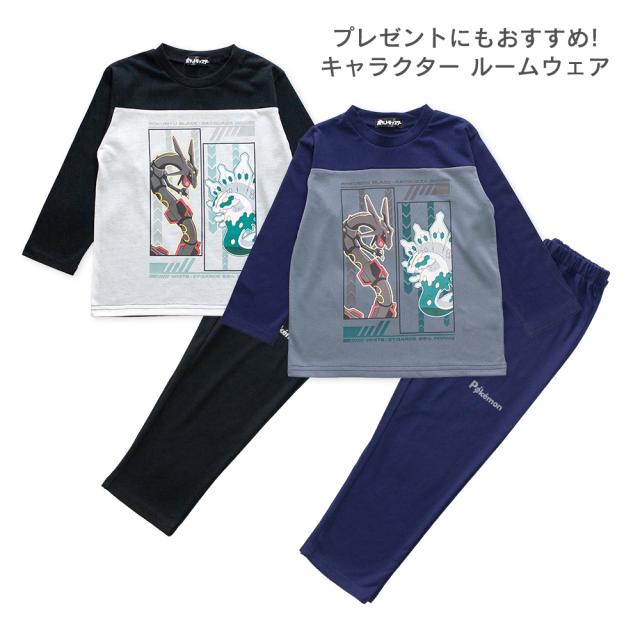 ポケモン パジャマ キッズ ルームウェア 男の子 長袖 春 夏 秋 Tシャツ素材 レックウザ ジガルデ ポケットモンスター プリント ネイビー ブラック 110 120 130 140 キャラクター お泊まり 幼稚園 保育園 プレゼント 子供 ボーイズ ジュニア メール便なら 送料無料 42674