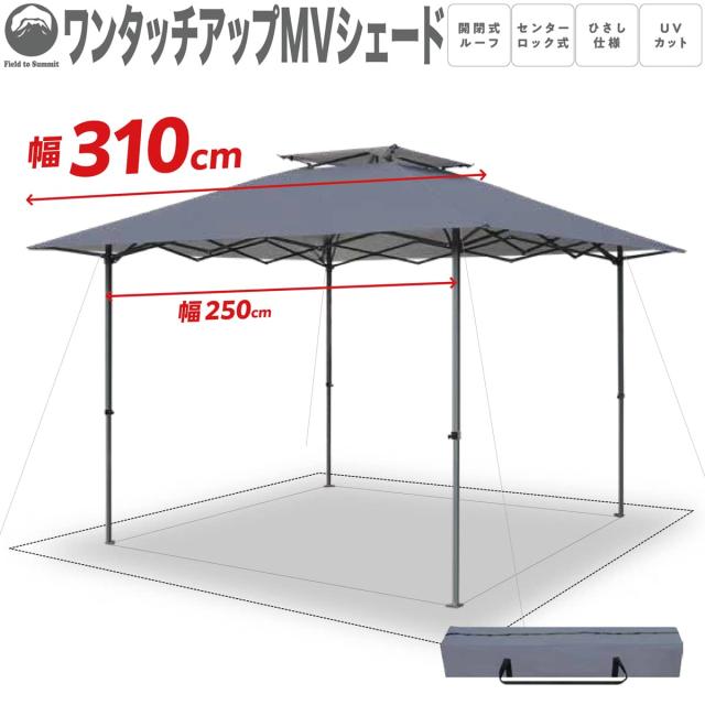 Field to Summit ワンタッチアップMVシェード FTSMVU310GB センターロック UVカット スチール 簡単 タープ 自立式 日除け 庭 アウトドア キャンプ BBQ 大型 軽量 花見 テント 310cm イベント フェス 海 プール 簡単設営 プッシュアップ