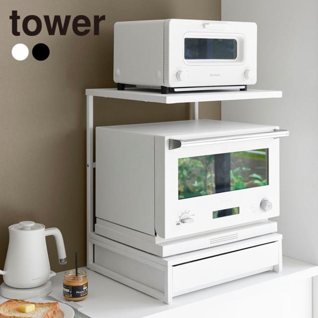 山崎実業 tower タワー 引き出し付きキッチン家電下ラック 2段 ホワイト10654/ブラック10655 | レンジ台 レンジラック トースターラック 引出し付き カウンター上 電子レンジ オーブン 収納 キッチン