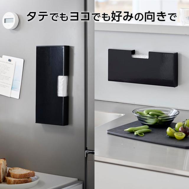 山崎実業 tower タワー マグネットスリムポリ袋収納ホルダー M ホワイト10511/ブラック10512 | 食品用ポリ袋 収納ケース 整頓 キッチン 台所 収納 磁石 スッキリ 仕切り付き 冷蔵庫 キッチンパネル