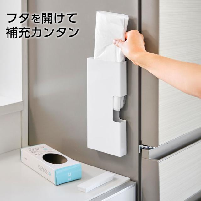 マグネットで簡単に設置!サッと取り出せるポリ袋ホルダー。