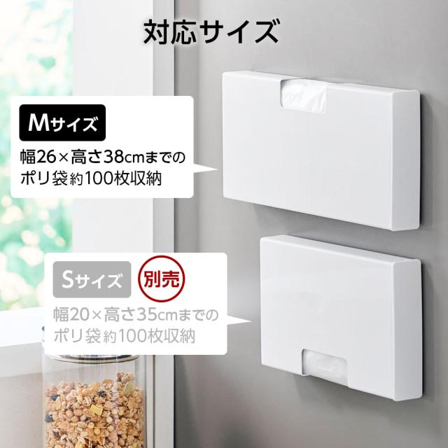 対応ポリ袋サイズ【M】幅26(マチ含まず)×高さ38cmまでのポリ袋を、約100枚収納できます。