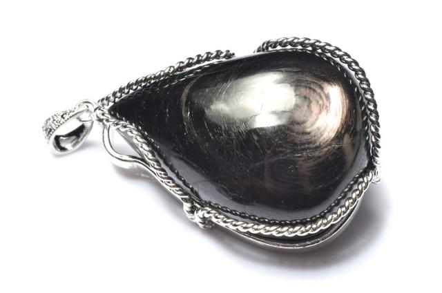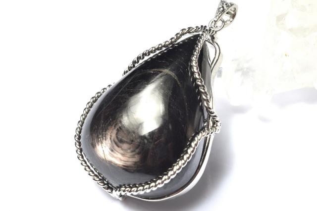 | 特徴・意味 | シックでかっこ良い漆黒色に輝く神秘なシラーがなんとも美しいです。 鉄分を多く含んでおりますので金属光沢効果もあり重厚感にも溢れており上品です。 ハイパーシーンは、和名を「紫蘇輝石(しそきせき)」と言い、パイロクシン(Pyroxene)「輝石」の一種で、鉄分を多く含むものをフェロシライト(鉄珪輝石)、マグネシウムを多く含むものをエンスタタイト(頑火輝石)と言います。 その中間の鉱物がハイパーシーンです。 ハイパースシーンとも呼ばれます。 黒色の石の中に白色から桃色のシラー(光効果)が浮かび上がる美しい天然石です。 |
