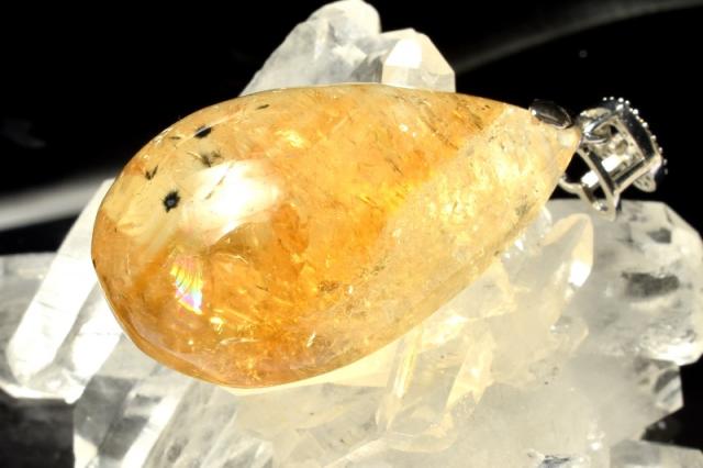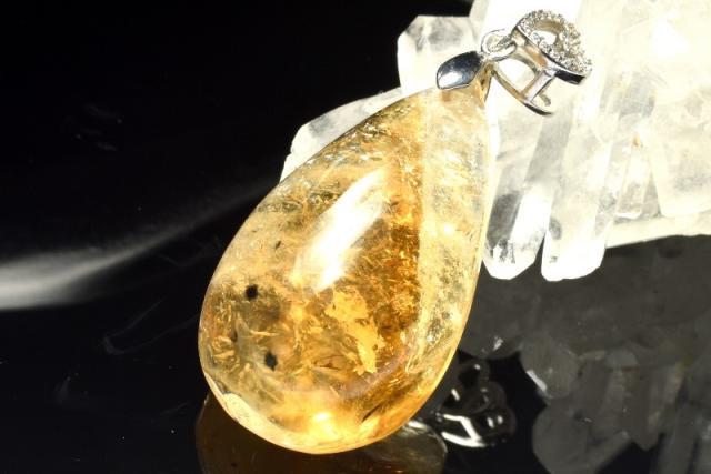 【1点物】希少◇高品質 ロマネサイトインシトリン 36x21mm ドロップ ペンダントトップ 金運・仕事運【ネコポス送料無料】_PD539