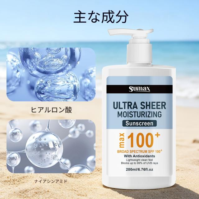 【SUMAX】ナイアシンアミド配合 日焼け止め モイスチャライザー 大容量 軽くて吸収しやすい 100SPF 保護 深層保湿 長時間持続 リフレッシュ べたつかない 低刺激 ピリングなし