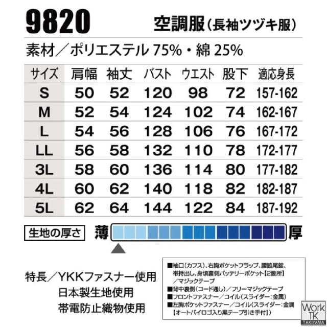 9820 全身に風が通る、快適すぎる空調つなぎ服!農業 造園業 自動車点検 ビルメンテナンス リフォーム業 大きいサイズ