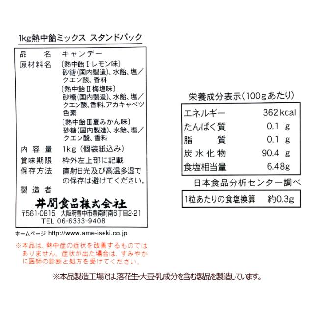 井関食品 【飴】 熱中飴ミックス スタンドパック 1kg (個包装 約200粒) 3種の味 熱中症対策 業務用