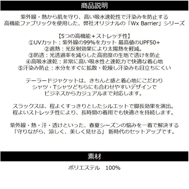 UPF50+ UVカット メンズ 上下 セットアップスーツ ジャケット スラックス 遮熱 吸水速乾 汗染み防止 ストレッチ Wx Barrier 送料無料 通販A3【RQ1536】