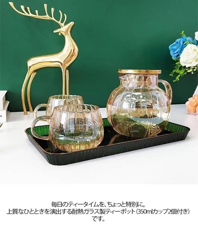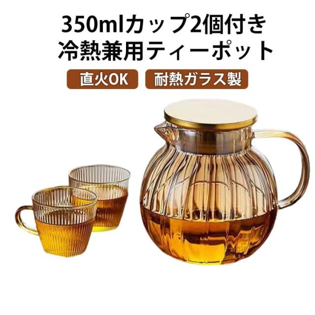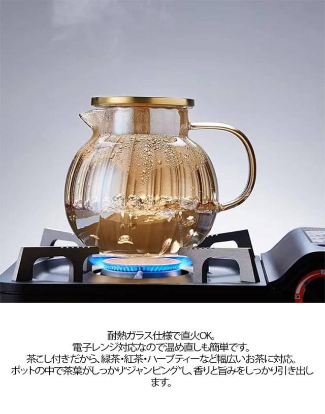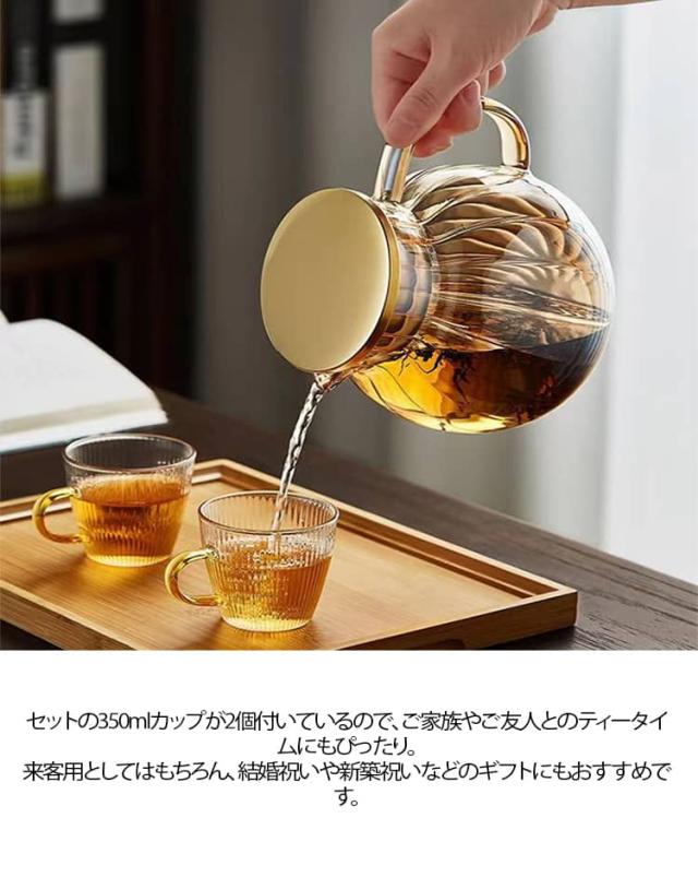 ハーブティー ポット 【350mlカップ2個付き】ティーポット 丸形 冷水ポット 直火OK お茶 ガラス急須 ステンレス 紅茶 ジャンピング 茶こし付き 緑茶 【350mlカップ2個付き】ティーポット 耐熱ガラス ガラス 耐熱 食洗機対応