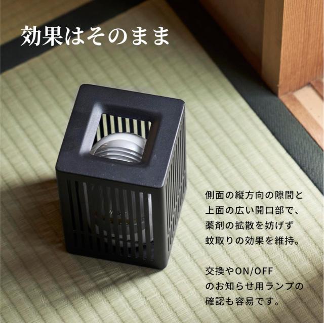拡散を妨げない設計本体側面には縦方向の隙間があり、上面には開口部を設けています。薬剤の拡散を妨げず、蚊取りの効果を維持する構造です。