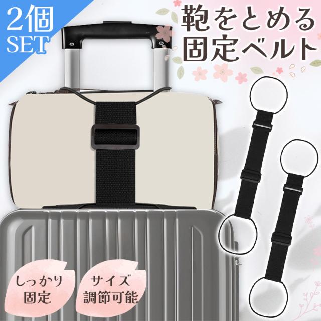 2個セット スーツケースベルト 荷物 固定 バンド ベルト ゴム 旅行 キャリーケース キャリーバッグ バッグ 鞄 スーツケースバンド 手荷物 サブバッグ とめる 止める ずり落ち防止 便利グッズ 持ち手 ブラック 黒 サイズ調節 上着 服 お土産 乗せる 旅行バッグ
