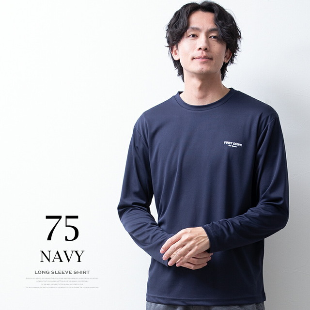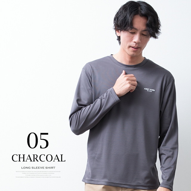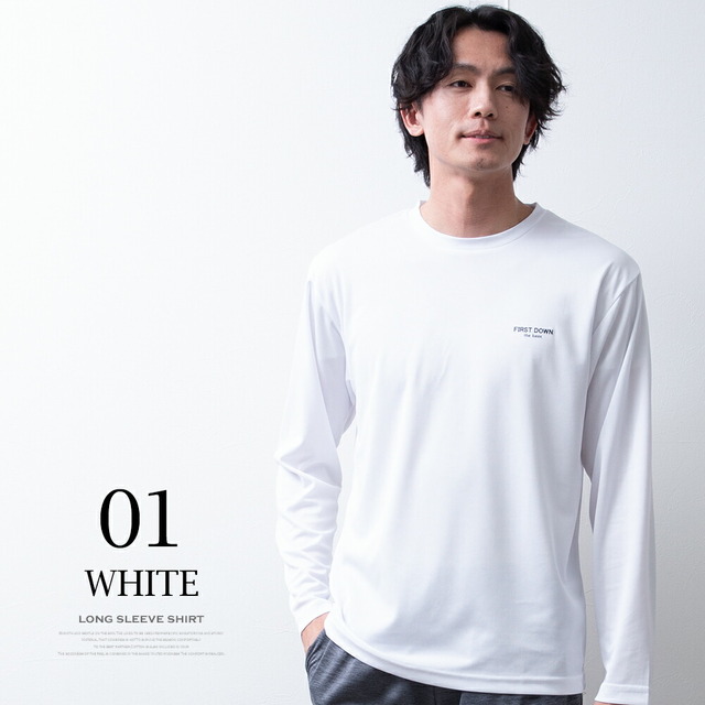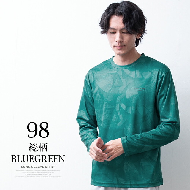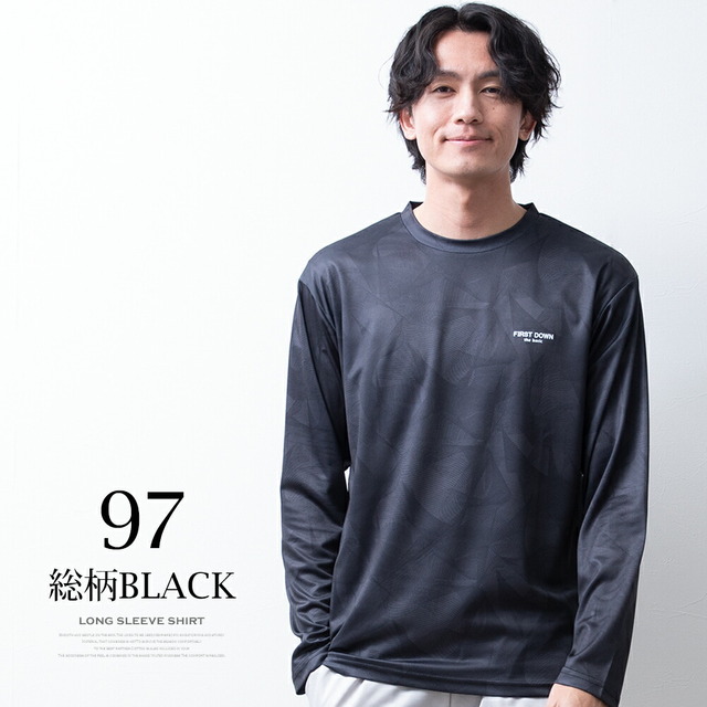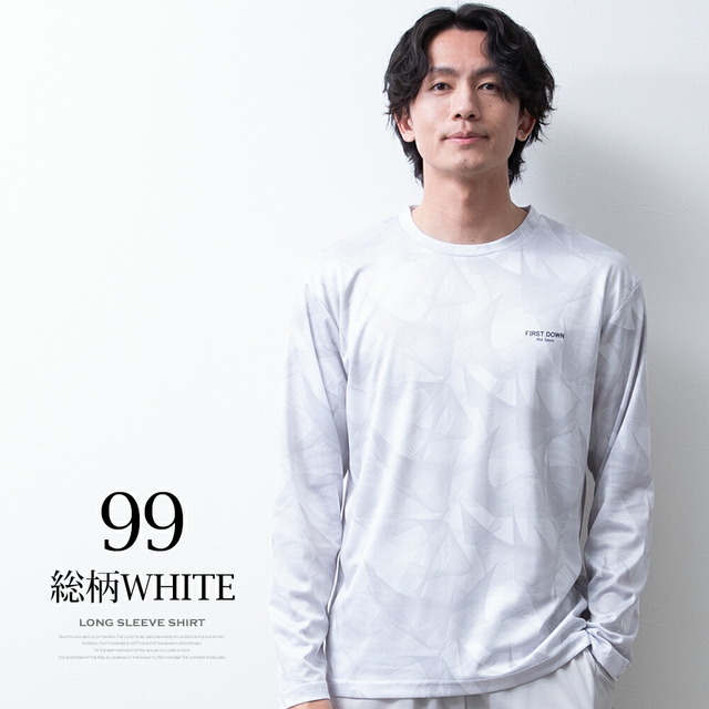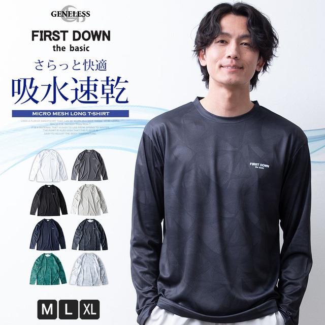 tシャツ メンズ 長袖 ファーストダウン クルーネック 吸水速乾 涼しい Tシャツ 長袖シャツ FIRSTDOWN 春夏 マイクロメッシュ 総柄 ロンT ストレッチ
