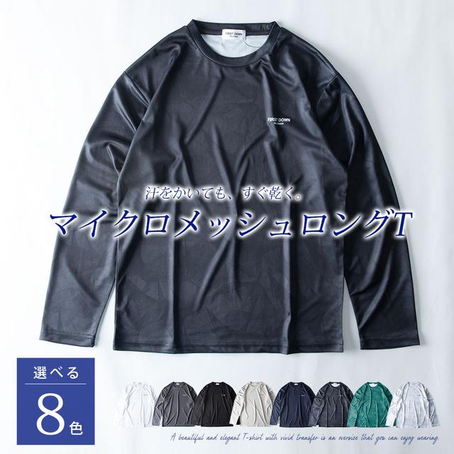tシャツ メンズ 長袖 ファーストダウン クルーネック 吸水速乾 涼しい Tシャツ 長袖シャツ FIRSTDOWN 春夏 マイクロメッシュ 総柄 ロンT ストレッチ メッシュ スポーツ 運動 スポーツウェア 全8色 春 夏 長袖tシャツ 無地 シンプル
