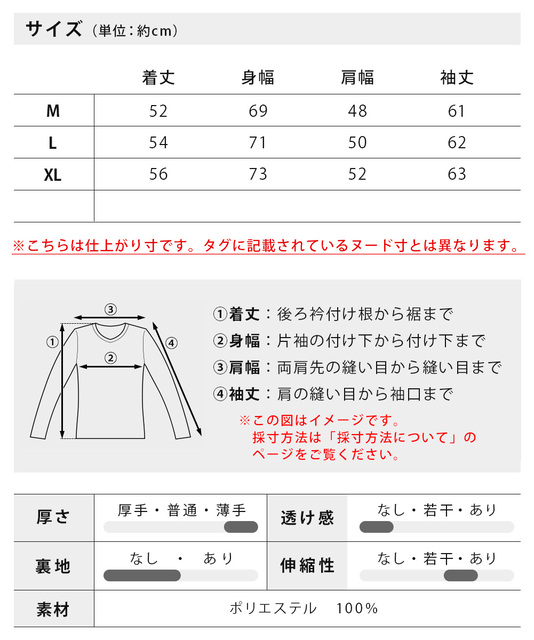 | サイズ | 着丈 | 身幅 | 肩幅 | 袖丈 |