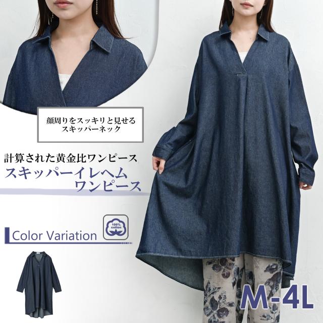 cam-saw-op0702【JANJAM2026春新作】長袖ワンピース ミドル丈ワンピース ミドルワンピース デニムシャツワンピース ダンガリーシャツワンピース 無地 ミドル丈 ミディアム丈 膝下丈 膝丈 膝上丈 ミドル ミディアム 膝上 膝下 スキッパー襟 スキッパーカラー シャツ襟 スキッパーネック スキッパー Vネック スキッパーシャツ 長袖 ロングスリーブ イレギュラーヘム バックテール ポケット ポケット付き ポケットあり 春服 秋服 冬服 春物 秋物 冬物 春ワンピース 秋ワンピース 春ワンピ 秋ワンピ 春秋ワンピース 春秋 春夏 綿100% コットン100% 綿 cotton100 綿素材 コットンデニム 洗濯機O 透けない 裏地なし 着痩せ 細見え ゆったり 大きめ 体型カバー 体型カバー服 お腹カバー ヒップカバー 大人 カジュアル フェミニン ナチュラル きれいめカジュアル 大人カジュアル シンプル 上品 デイリーワンピース カジュアルワンピース 大人可愛い きれいめ キレイ目 綺麗め かわいい かっこいい 着こなし おしゃれ 定番 春コーデ 秋コーデ 冬コーデ ファッション 大きめ 女性 婦人用 ミセス 30代 40代 50代 2026 春新作 春 秋 紺 ネイビー インディゴ M LL 3L 4L 9号 13号 15号 17号