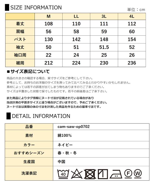 4L:着丈112 肩幅60 バスト154 袖丈52 袖口周26 裾周236