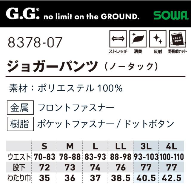 8378-07 G.G. かっこいい ジョガー おしゃれ 軽くて動きやすく履きやすい軽量素材 ポケット多い 消臭テープ カーゴポケット 反射テープで高視認