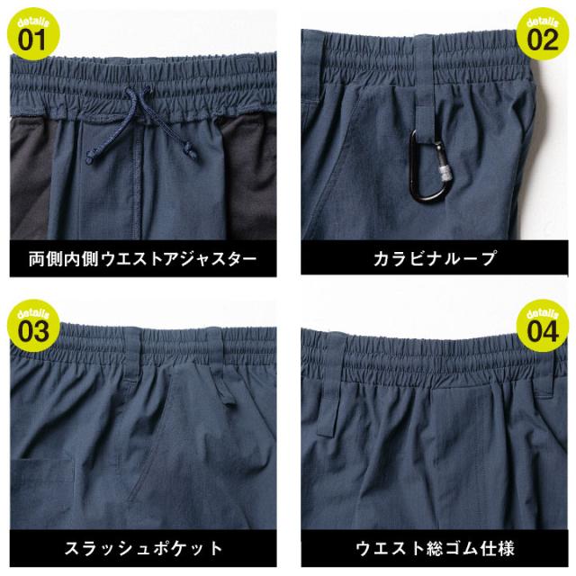 軽量なリップストップ素材と高いストレッチ性で、動き回る夏もストレスフリーです。