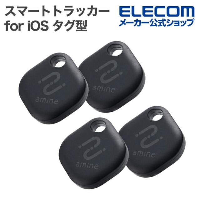【在庫処分・お買い得!】 エレコム スマートタグ amine スマートタグ for iOS タグ型 IP65設計 iOS対応 電池交換タイプ 4枚セット ブラック ┃LGT-LWBETG1BKA4