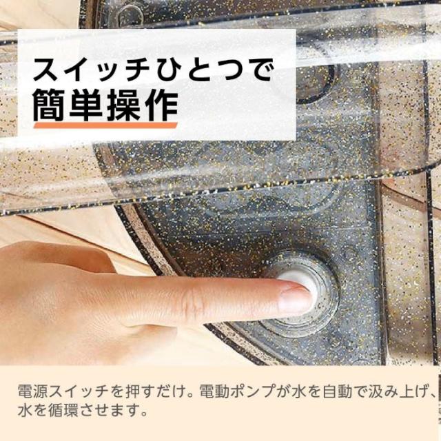 電源スイッチを押すだけ。電動ポンプが水を自動で汲み上げ、水を循環させます。