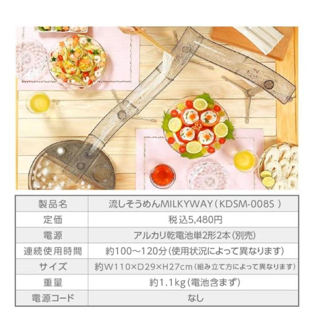 流しそうめん 流しそうめん器 卓上流しそうめん器 流しそうめん機 きらきら MILKYWAY KDSM-008S そーめん そうめん 子ども こども 全長約1m ビッグサイズ 組み立て式 家庭用 電池式 送料無料