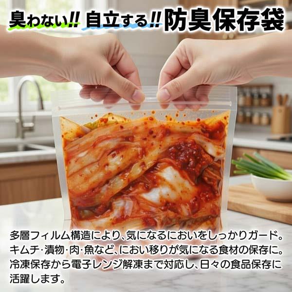 送料無料 !( メール便 ) 食品保存袋 防臭袋 7枚入 ニオイ漏れ防止 冷凍保存 電子レンジ 解凍対応 マチ付き 自立型 ロング ワイド 超ロング【 冷蔵庫 におい対策 漬物 キムチ 魚 肉 保存 バッグ キッチン用品 ポイント消化 500円 以下 の商品 新着!】 送料込 ◎ 1M◇ 防臭袋