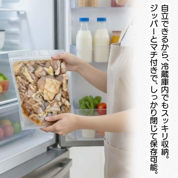ジッパーとマチ付きで、しっかり閉じて保存できます。