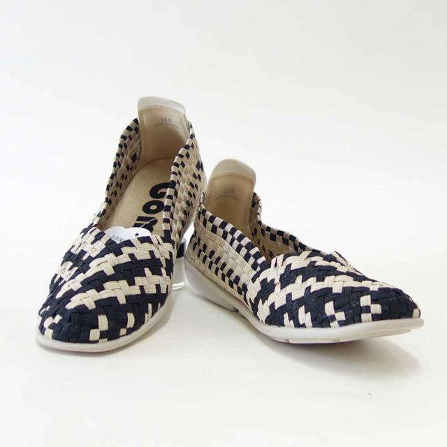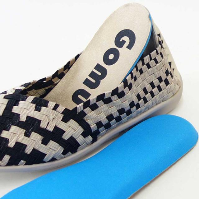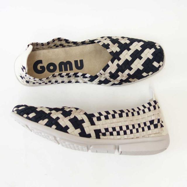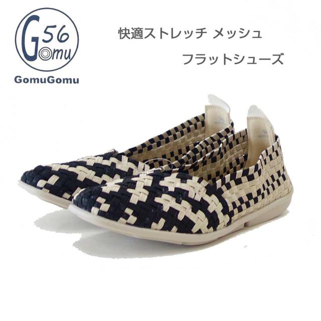 Gomu56 ゴムゴム 101S ブラック/ベージュ (レディース) ゴムメッシュ スリッポン フラットシューズ オフィス履き 外反母趾 水洗いOK「靴」