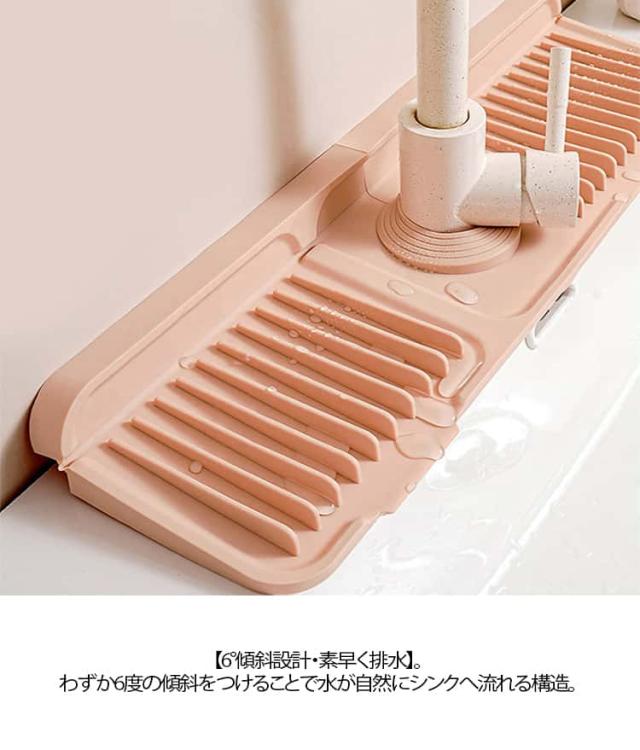 蛇口 キッチン 水切りマット ボタン固定 速乾 水切りマット 排水マット 乾燥用マット シリコン製 洗面台 折りたたみ可 水切りマット シンク蛇口用スプラッシュガード カット可能 37cm 45cm